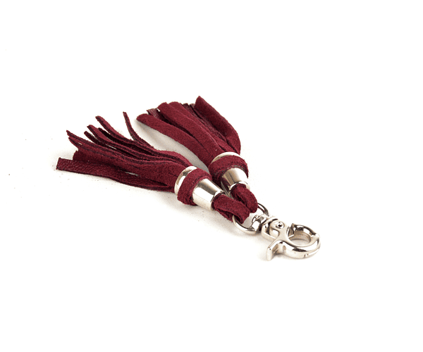 Llavero de Cuero Burdeo de dos piezas con colgante de plata